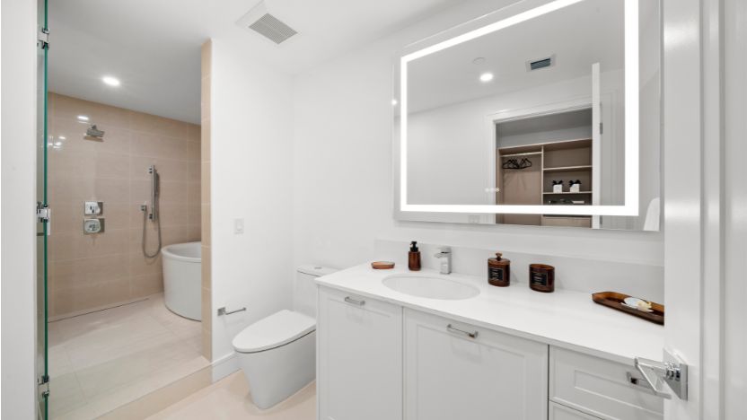 Sky Residence C primary washroom featuring a luxurious tub and refined design details.
