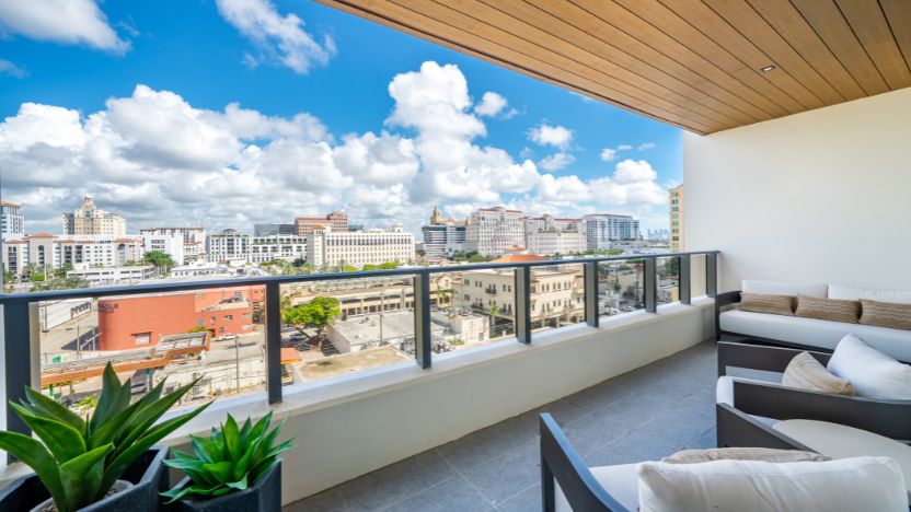 Coral Gables skyline as seen from the primary balcony of Sky Residence C.