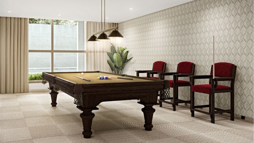 Unwind at Regency Parc’s Billiard Room—featuring a tournament table and premium equipment.